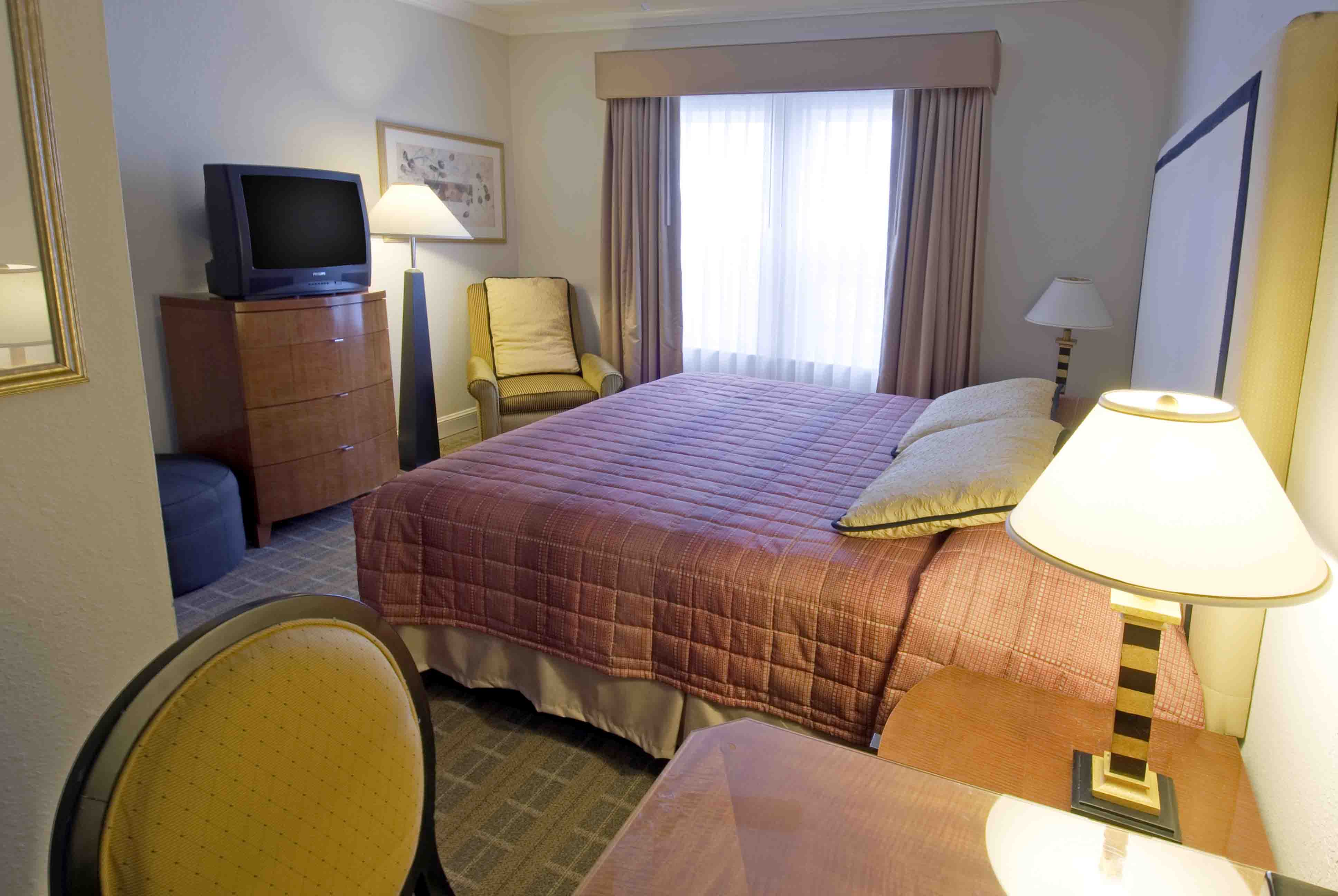 All accommodations include a lite breakfast from 7 to 10 A.M, 140+ HD Channels with ShowTime® on a 37" Flat-Panel TV in your room, and access to the hotel's bountiful amenities. WiFi Internet access is available throughout the property and included with your stay at no charge. A guest computer in the lobby with complimentary Internet and Printer access is available 24/7. Microwave, fridge, iron, and many more amenities & additional services available upon request.